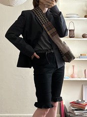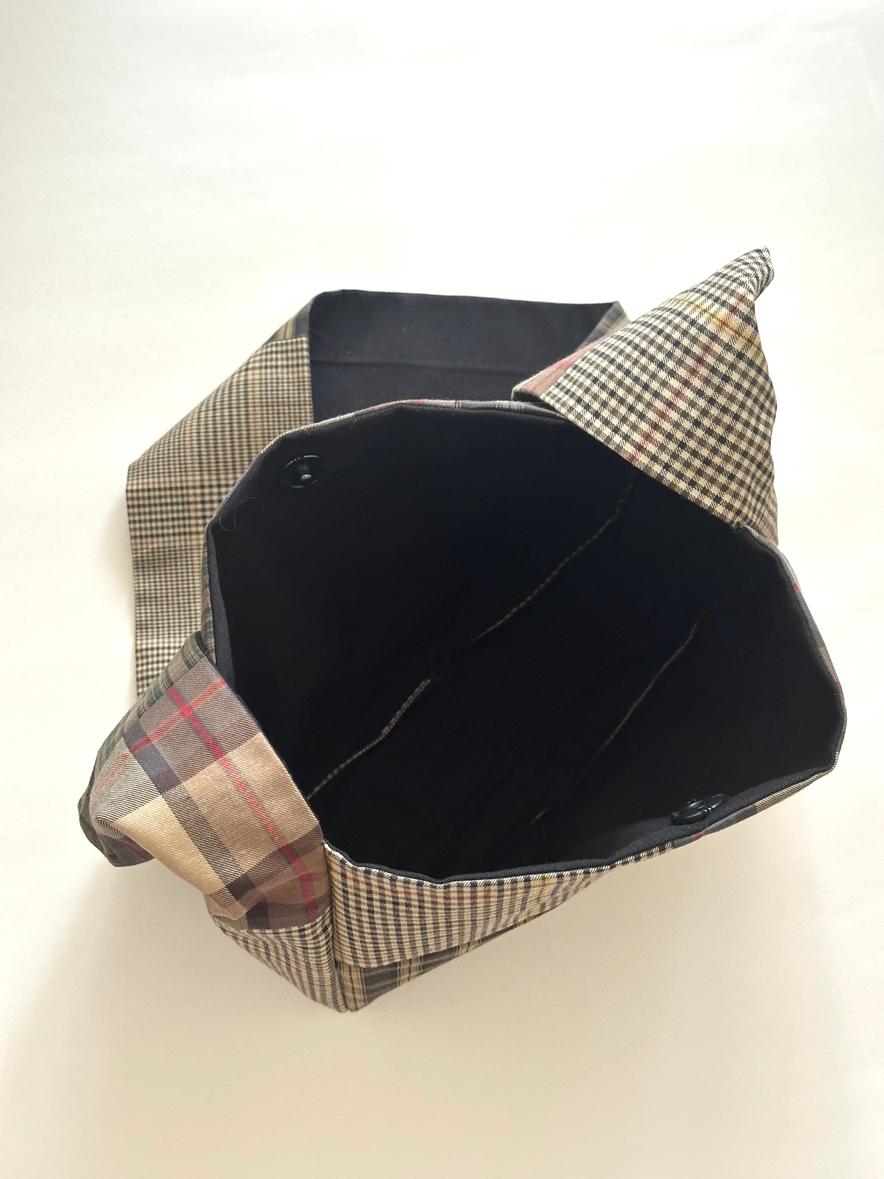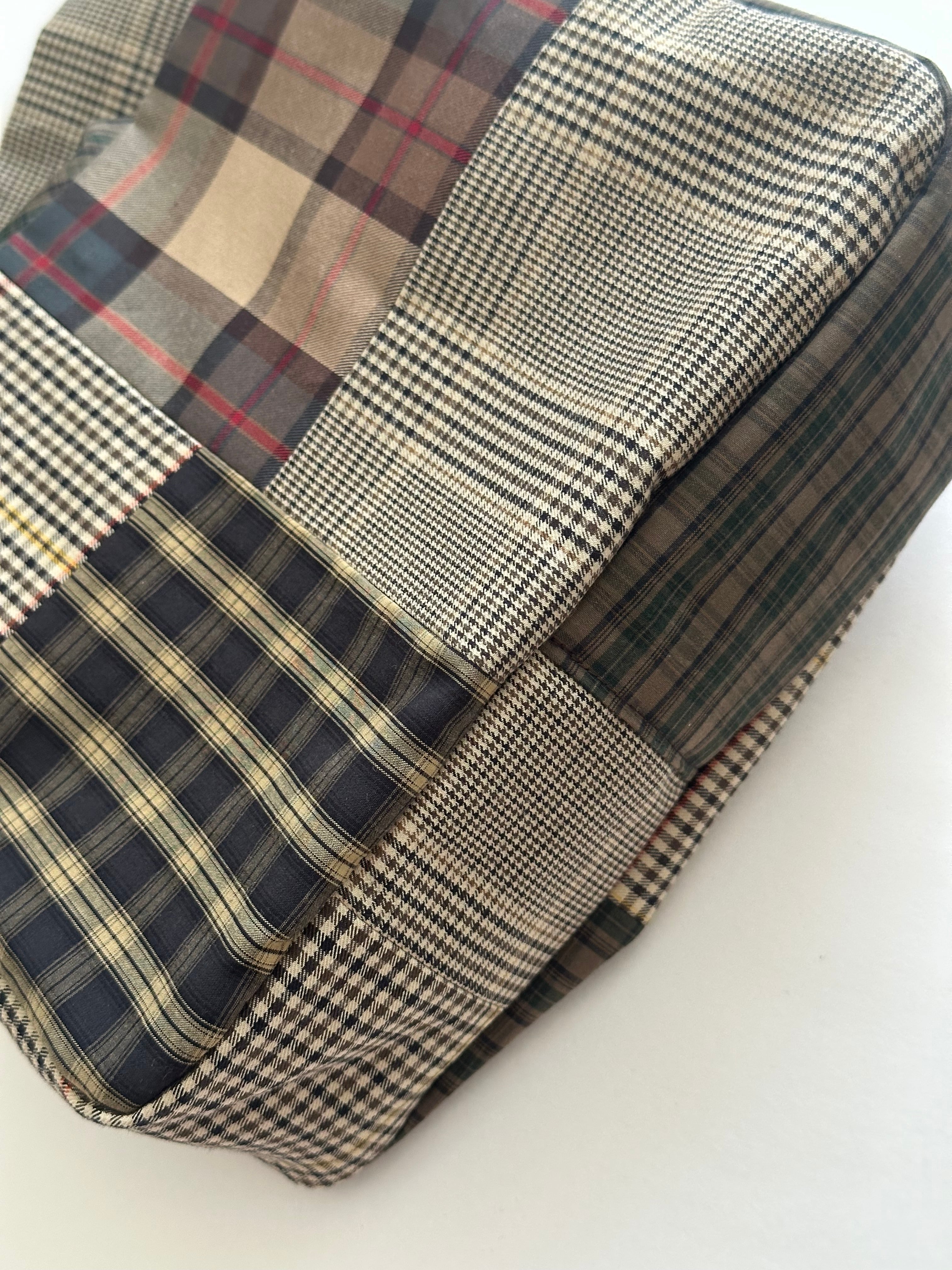 コットン地の数種類のチェックをパッチワークにした一点もののバッグ。